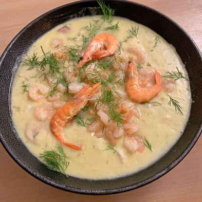 Die Fischsuppe passt perfekt in die Fastenzeit, ist aber auch für Geniesser ein absoluter Hochgenuss. Mit den Fisch-Zutaten lässt sich variieren, je nach Angebot.