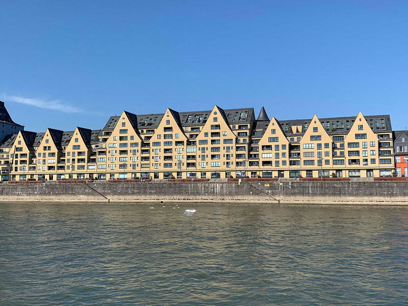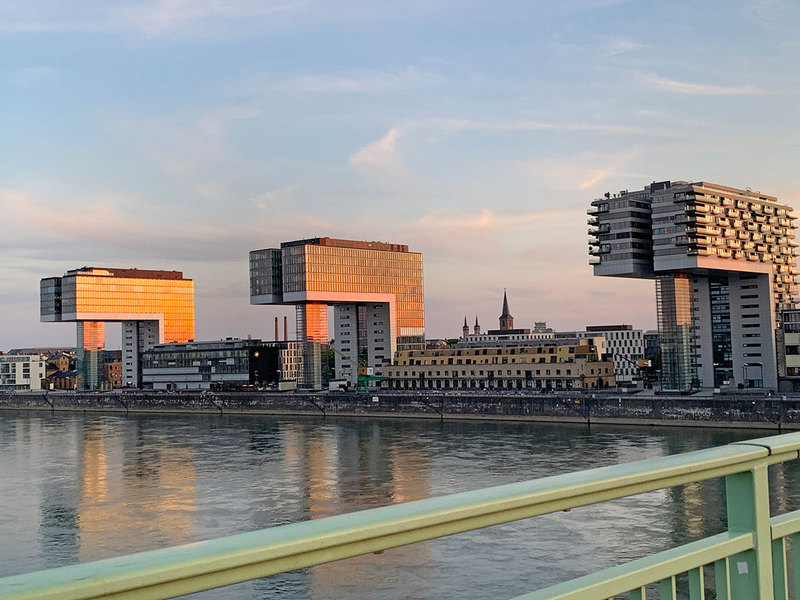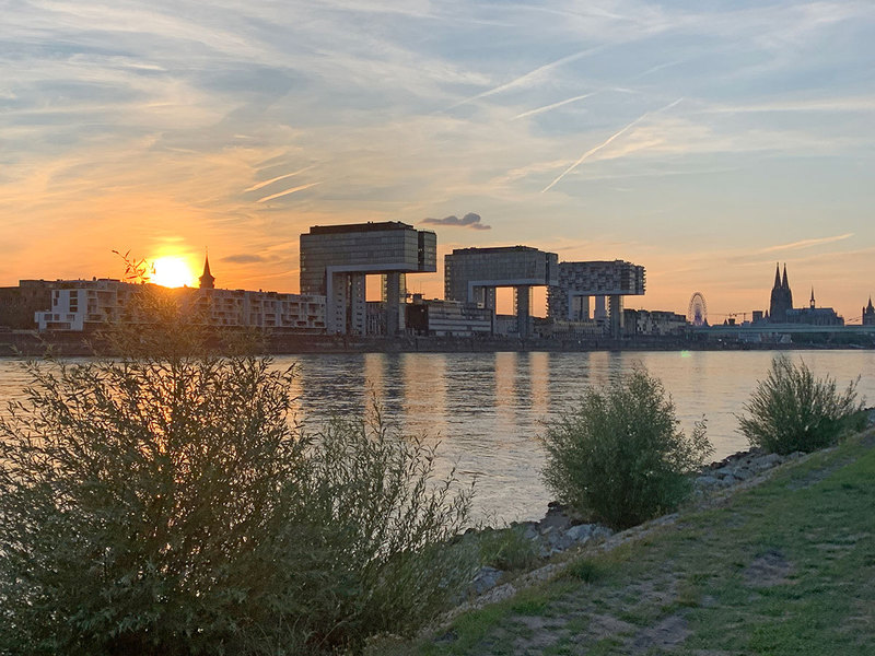 Der bekannteste Hafen von Köln ist gar kein Hafen mehr. Ehemalige Lagerhallen, Getreide-Silos und das Zollamt wurden zu schicken Büro- und Wohnhäuser umgewandelt. Lastenkräne, dekorativ in Szene gesetzt, erinnern an die grosse Bedeutung, die der Rheinauhafen für Köln über Jahrhunderte hatte. Mittendrin die drei etwa 60 Meter hohen Kranhäuser, die zum neuen Wahrzeichen von Köln wurden.