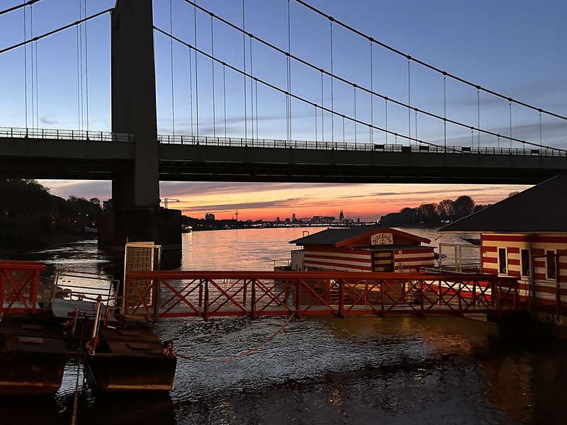 Die Rot-Weiss-gestreifte Alte Liebe ist gut in unmittelbarer Nähe der Rodenkirchner Brücke zu finden.