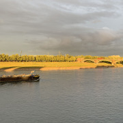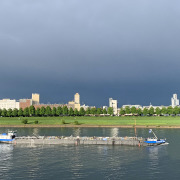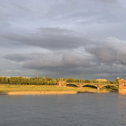 Natürlich spielt auch das Wasser vom Rhein eine zentrale Rolle: der Wasserstand, die Wasserfarbe, die Wasseroberfläche. Manchmal spiegelglatt, gekräuselt oder gewellt. Manchmal haben die Wellen sogar Schaumkronen.