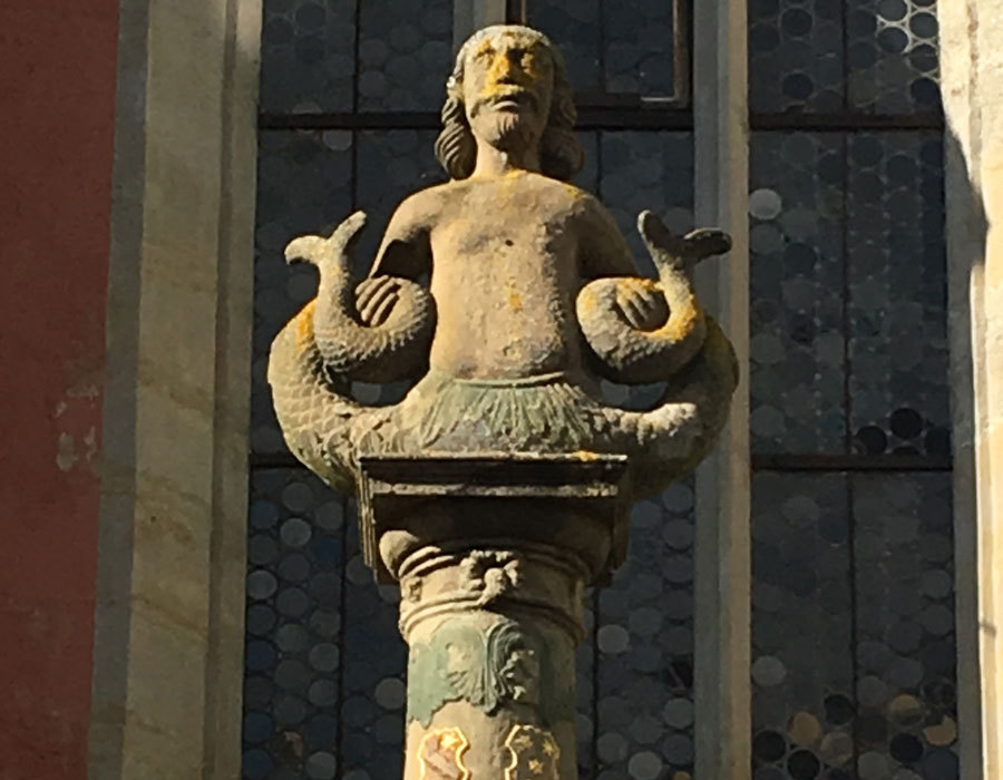 Viele alte Brunnen und Tröge werden von Nixen oder Quellnymphen geziert.