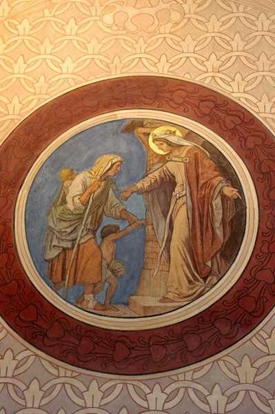 Die ungarische Königstochter Elisabeth lebte als Frau des Landgrafen Ludwig IV. von Thüringen auf der Wartburg. Nach dem Tod ihres Ehemannes kehrte sie dem Hofleben den Rücken, um als Spitalschwester in dem von ihr gegründeten Marburger Hospital persönlich für Bedürftige zu sorgen. Sie starb im Alter von 24 Jahren. Vier Jahre nach ihrem Tod wurde sie von Papst Gregor IX. heiliggesprochen. Aufgrund ihrer Tätigkeit als Krankenschwester wurde sie als Namenspatronin zahlreicher Elisabeth-Krankenhäuser gewählt.