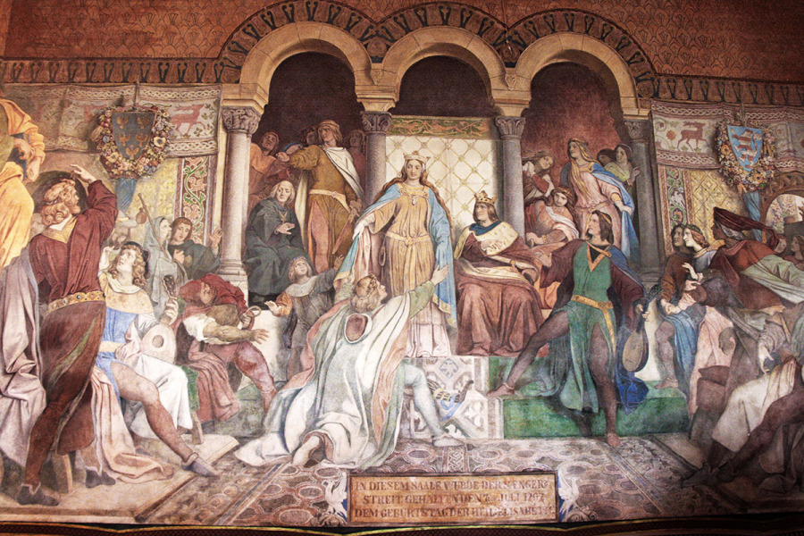 Sängerkrieg auf der Wartburg ist eine schrittweise gewachsene Sammlung mittelhochdeutscher Sangspruchgedichte des 13. Jahrhunderts. Das Fresko malte Moritz von Schwind 1838. Das Thema ist von Richard Wagners Oper Tannhäuser bis zu aktuellen Interpreten immer wieder aktuell.